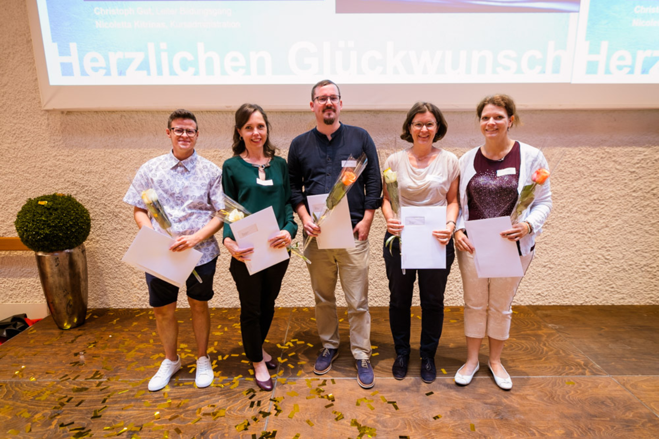 Wir sind sehr stolz auf unsere ehemaligen Studierenden und belohnten Sie mit einem Goldregen und ein «Hoch auf uns» von unseren Musikern.
