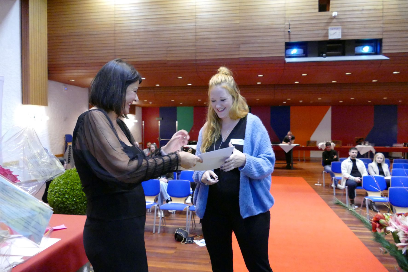 Der rote Teppich Moment ist immer wieder ein Highlight für die Absolventinnen und Absolvent. Auch dieses Mal durften sie über den roten Teppich zur Bühne gehen und ihr Zertifikat und eine Rose entgegennehmen.